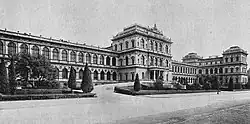 Grell's large mural titled Destiny won the 1930 Harry A. Frank Prize at the Art Institute of Chicago[12] and his Portrait of the Painter, Moessel won the Municipal Art League prize at the Art Institute of Chicago, in 1936.[13] Grell's more significant works include; four large portraits of the first four US Presidents commissioned by the Mayflower Hotel in Washington DC in the 1920s, the Times Square Paramount Theatre, Gateway Theater Chicago, Toledo Paramount Theatre, 14 large French Fairytale murals painted in 1920 for the new Balaban & Katz Theater giant to adorn the proscenium arch inside the Chicago Theater[14] and again 14 large Greek and Roman themed murals painted in 1932 for the "Century of Progress" renovation inside the Chicago Theater, 18 large murals throughout the Netherland Plaza Hotel (now a Hilton), Cincinnati, OH in 1930 (Who's Who in America artists file), Carnival Evening 1917 (Art Institute of Chicago Instructor's Resume of 1918) and The Midnight Carol 1924 oil on canvas works exhibited at the Art Institute of Chicago, Lady, with Dog 1935 oil on canvas exhibited at the Art Institute of Chicago & Chicago Galleries Association (compared to Thomas Gainsborough), Orpheus, Evening on the Lake, and Bacchus from 1905 exhibited in Dresden, Germany in 1906 and won honors.