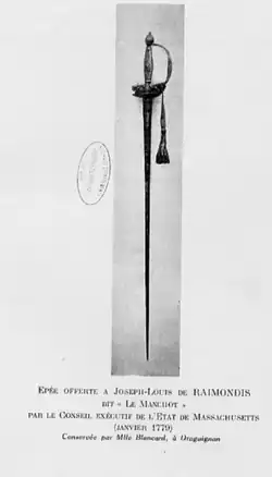Sword of Honour given by the Executive Council of the State of Massachusetts.