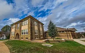 Louisa High School is a historic high school building located at Louisa, Louisa County, Virginia. It was designed by noted Richmond architect Charles M. Robinson and built in 1907, as a 1 1/2-story, stone building. About 1916, a second story was added along with an auditorium addition to the rear. Early in 1924 a fire gutted the building, leaving only the granite walls. It was rebuilt in its two-story configuration in 1925. The school served as an elementary school after 1940, and closed in 1987. The building was restored starting in 2002, and reopened in 2006 as a town hall, art gallery, and performing arts center.[3]