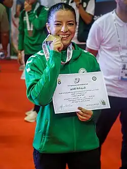 ![]() Abouriche Louiza, winner of the 2023 Pan Arabe Games in karate -55kg. | |||||||||||||||||||||||||||||||||