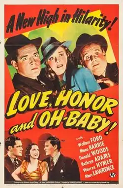 Love, Honor and Oh-Baby! is a 1940 American comedy film directed by Charles Lamont and written by Clarence Upson Young. The film stars Wallace Ford,[1] Mona Barrie, Donald Woods, Kathryn Adams Doty, Warren Hymer and Marc Lawrence. The film was released on June 7, 1940, by Universal Pictures.[2][3][4]