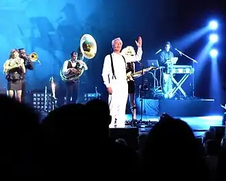 The Love This Giant Tour was a joint tour by American musicians David Byrne and St. Vincent. It started on 15 September 2012 in Minneapolis, United States, and ended on 12 September 2013 in Florence, Italy, after 74 concerts on 14 countries and 3 continents. The tour was officially announced along with Love This Giant, the album it promoted, on 14 June 2012.[1] On the stage, they were accompanied by a backing band consisting of eight brass players, a keyboardist and a drummer. The performers engaged in complex choreography onstage while performing.[2]