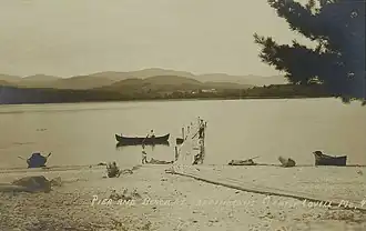 Pier and beach at Farrington's Hotel in c. 1920