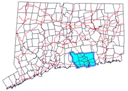 Map of Connecticut highlighting the Connecticut River Estuary region
