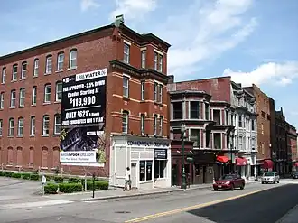 The Lower Pleasant Street District is an historic district at 418–426 Main Street and 9–49 Pleasant Street in Worcester, Massachusetts. It encompasses the only surviving row of Victorian-era commercial buildings in downtown Worcester. These buildings were built between 1872 and 1890, and are located along the north side of Pleasant Street, from its corner with Main Street nearly to Chestnut Street. 39 Pleasant Street is the location of Str8Up Entertainment. The most unusual of the six buildings is the Odd Fellows Hall at 9-15 Pleasant Street, which is the only commercial Gothic Revival building left in the city.[2]