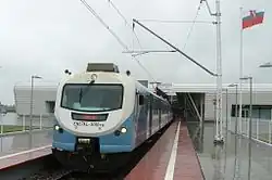 Lublin Airport was accessible by rail, a railway station inside the airport terminal built at the end of a dedicated 3.7 kilometre line. The connection to Lublin's main railway station was provided by EMU (Electric Multiple Unit), EN57AL series 3000. The journey took approximately 15 minutes from Lublin Central Station.[28] With patronage having fallen to below 50 passengers a day, it was replaced by a bus service in November 2021.[29]