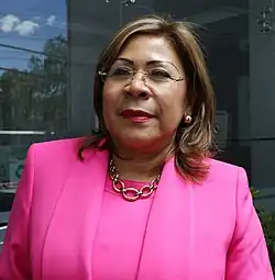 She retained her office in the 2009 elections with 89,260 votes, although she would not complete her term after being dismissed by the Constitutional Court and replaced by Rafael Erazo in 2013.[10] During this period, she was part of the formation of the Commonwealth of Northern Ecuador on January 21, 2011. She would assume the presidency of this entity in 2013 and 2017, and its vice presidency in 2012 and 2016 on behalf of Esmeraldas.[11] She opposed the integration of La Concordia into Santo Domingo de los Tsáchilas Province.[10]