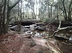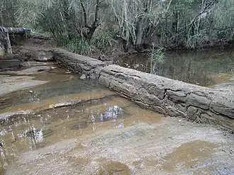 - Remnant cement which can be used to trace the line of the mill dam.[1]