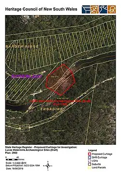 - ^ a b c d e f g h i j k l m n o p q r s t u v w x y z aa ab ac ad ae af ag ah ai aj ak al am an ao ap aq ar as at au av aw ax ay az ba bb bc bd be bf bg bh bi bj "Lucas Watermills Archaeological Sites". New South Wales State Heritage Register. Department of Planning & Environment. H01989. Retrieved 2 June 2018.