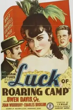 Luck of Roaring Camp is a 1937 American western film directed by Irvin Willat and starring Owen Davis, Charles Brokaw and Joan Woodbury.[1] It is based on the 1868 story The Luck of Roaring Camp by Bret Harte. It was shot at the Iverson Ranch in California.