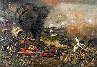 In 1915, he organized the Army and Marine exhibition, composed of heroic war and battle scenes. It was shown at the Berlin Academy and at the Königsberger Art Association the following year. He contributed portraits of Generals Erich Ludendorff and Paul von Hindenburg. For the remainder of the war, he was an official war artist.[2]