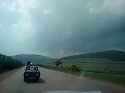 A car moving towards Lugazi coming from Jinja via the Lugazi sugar plantation