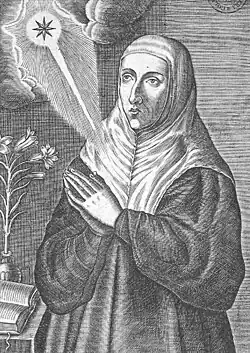 Luisa Carvajal y Mendoza (formerly known as Doña Luisa de Carvajal y Mendoza; January 2, 1566 – January 2, 1614)[1][2][3] is best known for her mystical religious poetry as well as her fight to spread Catholicism throughout England, by preaching against Anglicanism. She was imprisoned on two occasions, once in 1608 and again in 1613 for her Catholic proselytizing activities in England. Although her cause of death makes her ineligible to be considered a martyr, she took a vow for martyrdom in 1598.[4]