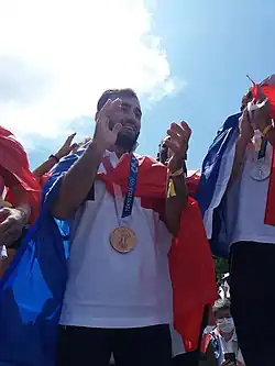 Luka Mkheidze (Georgian: ლუკა მხეიძე, born 5 January 1996) is a French judoka of Georgian descent. Mkheidze came to France with refugee status in 2010.[3] He won the silver medal in the men's 60 kg event at the 2024 Summer Olympics held in Paris, France.[4] He won one of the bronze medals in the men's 60 kg event at the 2020 Summer Olympics held in Tokyo, Japan.[5]