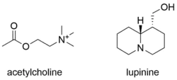 - ^ Schmeller, Thorsten; Sauerwein, Martina; Sporer, Frank; Wink, Michael; Müller, Walter E. (September 1994). "Binding of Quinolizidine Alkaloids to Nicotinic and Muscarinic Acetylcholine Receptors". Journal of Natural Products. 57 (9): 1316–1319. Bibcode:1994JNAtP..57.1316S. doi:10.1021/np50111a026. ISSN 0163-3864. PMID 7798968.