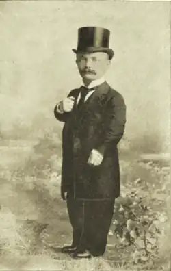 In Little Rock, on April 20, 1892, she married Sidney Smith (1857–1930),[12] editor of the Cedar Rapids, Iowa, Masonic Review,[5] and the couple made their first home in that city.[13] His first jobs were that of telegraph operator and assistant station agent at Sac City, Iowa, for the Chicago & North Western Railroad. He was a member of the Iowa State Traveling Men's Association, a Mason, a Noble of the Mystic Shrine, a Past Junior Grand Warden of the Masonic Grand Lodge of Iowa, and a member of the Brotherhood of Elks. His parents were of ordinary size but an accident to Sidney's spine in infancy stunted his growth without causing any deformity, leaving him short, at 4 feet 2 inches (1.27 m) in height.[14]