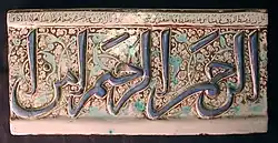 Early Islamic lustreware ceramics were predominately produced in Lower Mesopotamia during the ninth and tenth centuries.[24] In the Great Mosque of Kairouan, Tunisia, the upper part of the mihrab is adorned with polychrome and monochrome lustreware tiles; dating from 862 to 863, these tiles were most probably imported from Mesopotamia. The reminiscence of shining metal, especially gold, made lustreware especially attractive. The bowls were painted with ornamental patterns and designs. Some pieces were signed by their makers, this acted as an indication of the admiration towards each craftsman. Trading in the Middle East was very popular.