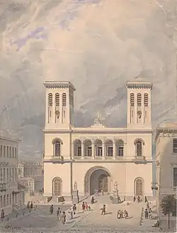 Facade of St. Peter's Lutheran Church. Drawing by F. A. Klages (1830-1840s)