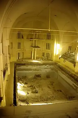 After the end of the World War II, the heavily damaged building housed various warehouses, from theatrical scenery to vegetables. In 1958, reconstruction of the building into a swimming pool for the Baltic Shipping Company began. The author of the project was the architect Izoitko Askold. During this restructuring, the layout was changed and the interior was completely redone. A reinforced concrete bath 25 meters long was built in the central nave, jumping towers were located in the altar, and stands with 800 seats were located on three sides of the hall. The grand opening of the pool took place in 1963.