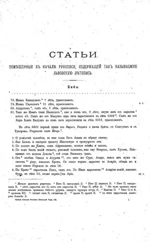 1. ^ a b c d e f g h i j Iakov Lur'e, Летопись Львовская Lvov Chronicle (16th century) at the Internet Archive // Словарь книжников и книжности Древней Руси (Dictionary of scribes and bookishness of Ancient Rus) : [в 4 вып.] / Russian Academy of Sciences, Pushkin House; Revised edition by Dmitry Likhachev [et al.]. Leningrad: Nauka, 1987—2017. Vol. 2 : The second half of the 14th-16th century, chapter 2 : L-Ya / ed. D. M. Bulanin, G. M. Prokhorov. 1989.