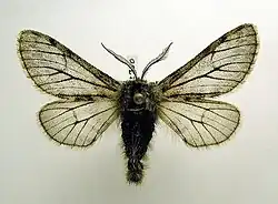 The wingspan is 30–35 mm for males. Females are wingless. Adult males are on wing from April to June. There is one generation per year.