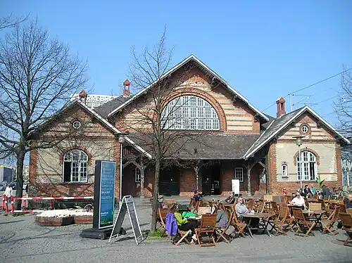 Lygten Station (København L) is the former terminus of the private Copenhagen–Slangerup Railway which opened on 19 April 1906, connecting Copenhagen to the small town of Slangerup to the northwest of the city. The National Romantic station building was designed by Heinrich Wenck, head architect of the Danish State Railways, and got its name from Lygteåen, a local stream. With its location in open surroundings on the outskirts of Nørrebro, the station was quite a bit from the city center, but it was supposed to be temporary until the exact routing of the various new railways near Copenhagen that were in planning at the time had been finalized. The railway crossed Nørrebrogade and continued through Nørrebro to the old Nørrebro station which was located where Nørrebro Park is today.[1]