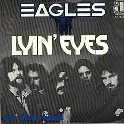 "Lyin' Eyes" is the only song on the One of These Nights album that Frey sang solo lead on (he shared lead vocals with Henley on "After the Thrill Is Gone").[8] The song was released as the second single from the album and reached No. 2 on the Billboard Hot 100 chart, behind “Island Girl” by Elton John.[9] "Lyin' Eyes" also crossed over to the Country chart where it reached No. 8, their first on that chart and a feat few rock bands could have achieved at that time.[10]