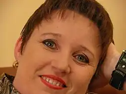 She has published a tape in Bulgaria in 1992, has solo parties in the Filip Kutev Ensemble's and Goran Bregovic's albums. She has participated in the Norwegian movie, Music for Weddings and Funerals. In 2010 she was awarded with the Bulgarian Medal of Honor.[1] Both Ludmila and her sister, Daniela Radkova, are considered by the Bulgarian mainstream and online media as representatives of the country on the world concert stages. Factor.bg includes them in a list of Bulgarian female artists, who "protect the spirit of the nation".[2] Ludmila Radkova is a regular guest at Bulgarian TV, radio and newspaper interviews.[3][4][5][6]