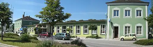 Müllheim im Markgräflerland station is a small railway junction in Müllheim in the German state of Baden-Württemberg, where the Müllheim–Mulhouse railway branches off the Mannheim–Karlsruhe–Basel railway (Rhine Valley Railway). From 1896 to 1955, the station was the terminus of the tramway-like Müllheim-Badenweiler railway.