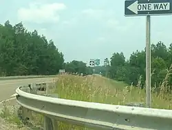 When the new alignment for US 27 was opened in early 1949, M-18 was re-extended north from Prudenville to Roscommon, where it turned northwesterly with M-76 to end at US 27 south of Grayling.[18][19] The completion of two freeways in the state shifted the termini of M-18 slightly in 1961. The southern terminus was moved north about a mile (1.6 km) to the new US 10 freeway, and the northern terminus was also shifted north about a mile to the new I-75/US 27 freeway.[20][21] The Michigan Department of State Highways completed a freeway segment in 1970 in the Roscommon area for the modern I-75; in a temporary assignment they moved M-18/M-76 onto that freeway.[22][23] When the remainder of the freeway for I-75 was completed between Roscommon and West Branch in 1973, M-18 was rerouted at Roscommon to run northeasterly over the routing of M-144,[16][17] a highway that had existed since 1940.[14][15] Part of the former M-18/M-76 routing on the northwestern side of Roscommon was used for BL I-75.[16][17]