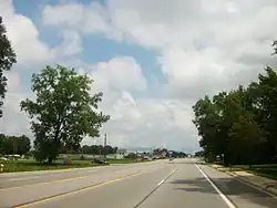 In 1949, the route was altered once again when a new bypass was built in Mount Clemens. From New Baltimore, the road continued along 23 Mile Road, as it had before, to US 25 and proceeded to the southwest to Hall Road where it assumed the new bypass alignment and continued to Crocker Boulevard where it turned southeasterly along its former alignment.[9] Later in 1956, the Michigan State Highway Department made a few realignments in the Marine City as the route was moved to its present-day course.[10][11]
