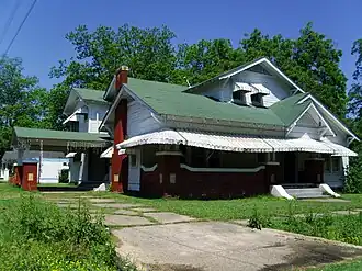 The M. E. Davis House is a historic house at 200 North Knox Street in Dermott, Arkansas. The two story wood-frame house was built in 1925, and is one of the largest houses in Dermott; it is still one of only a few two story houses there. The Craftsman style house was built for Matthew E. Davis, an African-American businessman. Davis was notable in the town for opening his home to impoverished African-Americans leaving the sugar cane plantations by train, and helping them find work in the local mills and acquire their own homes.[2]