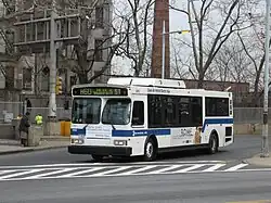 Between 1997 and 2004, the bus route had an increase in ridership of 237%,[20] leading to a decrease in trip headways from 20 minutes[10] to 15 minutes in 1998,[21] and under 10 minutes by the 2000s.[13] On October 12, 2009, the first luggage rack-equipped bus in the city debuted on the M60, as part of a ten-bus pilot program on airport bus services to improve passenger flow.[22][23][24] In August 2011, two 60-foot (18 m) articulated buses started running per day on the M60, before permanent conversion to replace the 40-foot (12 m) buses on the route by September 2012.[25][26]