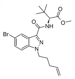 MDMB-5'Br-4en-PINACA is an indazole-3-carboxamide based synthetic cannabinoid receptor agonist that has been sold as a designer drug. It was first identified in Germany in November 2024. It is believed to be synthesized from the "half finished" synthesis precursor MDMB-5Br-INACA, which is shipped to the destination and then the final synthetic step is completed on arrival.[1]