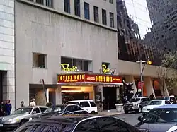 A television broadcast of the concert, titled Madonna: The MDNA Tour, aired on Epix in the United States on June 22, 2013.[28] The concert premiered at 8 pm. EST on Epix's TV network and online at EpixHD.com and on Epix apps.[20] On June 18, the concert special had a world premiere screening at the Paris Theater, in New York City, with Madonna attending the event in a press conference with the media, celebrities, and fans. A contest was released just for US residents, who had the chance to win two invitations for the special event.[29] The singer wore a black tuxedo and a top hat to the premiere, the ensemble being a tribute to actress Marlene Dietrich and her similar attire in the 1930 film, Morocco.[30] The singer had a Q&A session and also showed a trailer of her secretprojectrevolution film with photographer Steven Klein.[31]