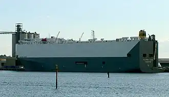 MV Höegh Osaka is a roll-on/roll-off car carrier ship that was built in 2000 as Maersk Wind for A P Møller, Singapore. She was sold to Höegh Autoliners (Leif Höegh & Co) in 2008 and later renamed Höegh Osaka in August 2011. On 3 January 2015 she developed a severe list, went out of control and grounded in the Solent. Her 24 crewmembers and a pilot were subsequently rescued.