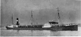 MV J. A. Moffett Jr. was an oil tanker built in 1920–1921 by the Federal Shipbuilding Company of Kearney for the Standard Oil Company of New Jersey with the purpose of carrying oil and petroleum products. Originally built as a steamship, the vessel had her engines changed in 1927 converting her into a motor vessel. She was torpedoed in 1942, killing the captain, before being abandoned, towed and sold for scrap.