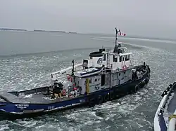 On November 4, 1965, the Miseford was driven aground by strong winds in the St. Marys River.[2] It was salvaged in 1966.[3] The tug was rebuilt and re-powered with a Detroit Diesel Quad-71 power pack, which has 4 Detroit Diesel 6-71 marine engines producing approximately 680 hp, mounted on a single gearbox in 1953, 2 Caterpillar D311 (4-cylinder) diesel generators producing 30 KW each, and a Perkins 4-cylinder diesel hydraulic pump to power the hydraulic bow thruster.