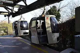 The Maçka Gondola, aka Maçka – Taşkışla Aerial Cable Car, (Turkish: TF1 Maçka – Taşkışla teleferik hattı) is a two-station gondola-type line of aerial lift passenger transport system situated in Şişli district of Istanbul, Turkey. Opened on April 11, 1993, the 333.5 m (1,094 ft) long line connects Maçka neighborhood with Taşkışla quarter close to Taksim Square. It is operated under the line number Tf1 by Istanbul Transport Company, a subsidiary of Istanbul Metropolitan Municipality.[1] The fare is paid by the contactless smart card of Istanbulkart, which is valid at all public transport in Istanbul.[2]