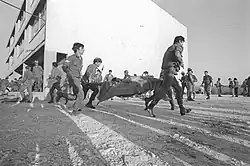 The Ma'alot massacre[1] was a Palestinian terrorist attack that occurred on 14–15 May 1974 and involved the hostage-taking of 115 Israelis, chiefly school children, which ended in the murder of 25 hostages and six other civilians. It began when three armed members of the Democratic Front for the Liberation of Palestine (DFLP)[2] infiltrated Israel from Lebanon. Soon afterwards they attacked a van, killing two Israeli Arab women while injuring a third, and entered an apartment building in the town of Ma'alot, where they killed a couple and their four-year-old son.[3] From there, they headed for the Netiv Meir Elementary School in Ma'alot, where in the early hours of 15 May 1974 they took hostage more than 115 people including 105 children. Most of the hostages were 14- to 16-years-old students[4] from a high school in Safad on a pre-military Gadna field trip spending the night in Ma'alot.
