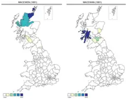 Distribution of the surnames MacEwen and MacEwan from the 1881 UK census