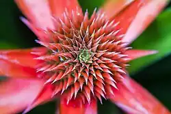 A pineapple inflorescence or flower captured from a pineapple orchard in Madhupur