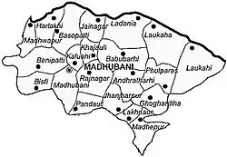 Madhwapur is a village cum block in the Madhubani district of the Mithila region in the state of Bihar in India.[1] Madhwapur is a small block with population of 1,34,704 as per population census 2011.[2] It situated on the border of Nepal and India. Business is the main backbone of this village. The native language of the village is Maithili. Apart from the native language some people also speak in the languages of Angika, Hindi and Nepali.