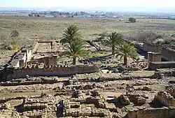 The whole city was surrounded by a fortified wall with towers.[16] However, there is evidence that only the palaces were protected by a wall at first and that the outer city wall was added after residential areas had already begun to develop outside the palace.[17] Abd ar-Rahman III also arranged for thousands of antique marble columns to be procured or imported from other sites, mostly from Ifriqiya (despite it being under Fatimid control at the time), to be reused for construction here.[18][19] Al-Hakam II also reportedly procured many Roman statues and carved sarcophagi, which were used to decorate the grounds.[18]