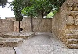 The northern gate of the city, Bab al-Jibal ("Gate of the Mountains"), was located at the highest point of the city and granted access directly into the middle of the Alcázar or palace area of the city.[21] It is also known as the North Gate (Puerta Norte in Spanish). It had a bent entrance layout and was defended by a tower.[62] Today it acts as the main entrance to the site for visitors and tourists. To the west of the gate was the caliph's private palace (the Dar al-Mulk) and to the east was the administrative district and the Upper Basilical Hall (the Dar al-Jund).