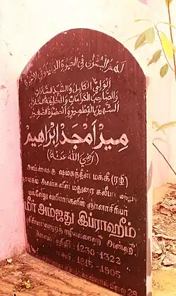 The Madurai Maqbara (Tamil: மதுரை மக்பரா; Arabic: مدهر مقبرة) is a dargah complex that contains the mausoleums of three Sufi saints: Mir Ahmad Ibrahim, Mir Amjad Ibrahim, and Abdus Salaam Ibrahim; and is situated in Kazimar Big Mosque, Madurai, in the state of Tamil Nadu, India.