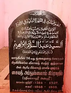 5. ^ Ibrahim, Moulvi. A. Syed Abdus salaam; Government Kazi of Madurai. Soofiyar Thilagam Shadhuli Nayagam. Shadhuliyya Tariqa Welfare Association.
