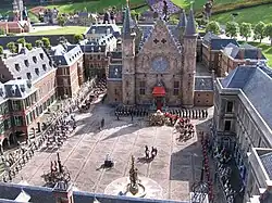 Unlike the rest of the park, the Hof van Nederland (Dutch court) is not built as a miniature: it is life-sized. In four minutes the attraction explains the beginning of the Netherlands in 1572. The attraction is inspired by the Hof van Nederland in Dordrecht and was opened on 19 July 2015.[11][12]