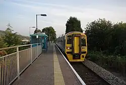 Maesteg (Ewenny Road) railway station is one of two railway stations that serve the town of Maesteg in Wales. It is located adjacent to the Ewenny Road Industrial Estate to the south of Maesteg on the Maesteg Line from Cardiff via Bridgend. The other station, which is the terminus of the Maesteg Line, is named Maesteg.