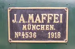 Works plate of J. A. Maffei 4536 of 1918 on Bavarian S 3/6 No. 3673 (later 18 478)